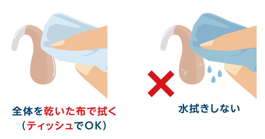 ※お使いの補聴器や耳せん(イヤモールド)によってお取り扱い方法が異なります。