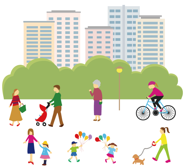 街中や公園、お店や娯楽施設、集会や講演会など、人の集まる場所で、ことばを聞きとる練習をすることも大切です。