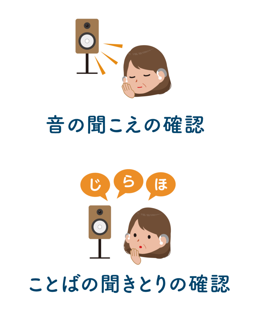 補聴器適合検査には、音の聞こえの検査と、ことばの聞き取りの検査があります。どちらも大切な検査です。