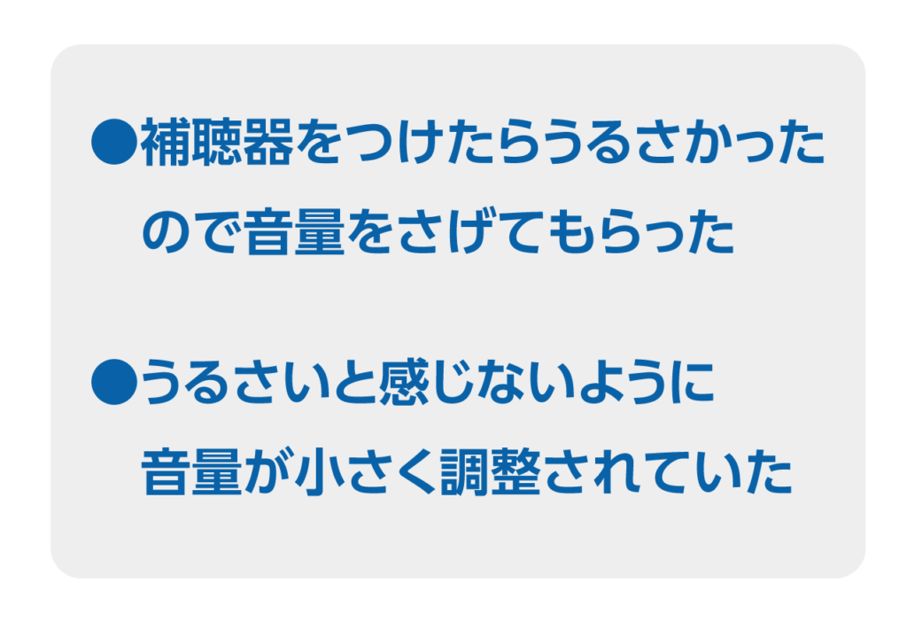 音の聞こえの検査では、補聴器をつけていない時の半分くらいの数値になるように調整します。