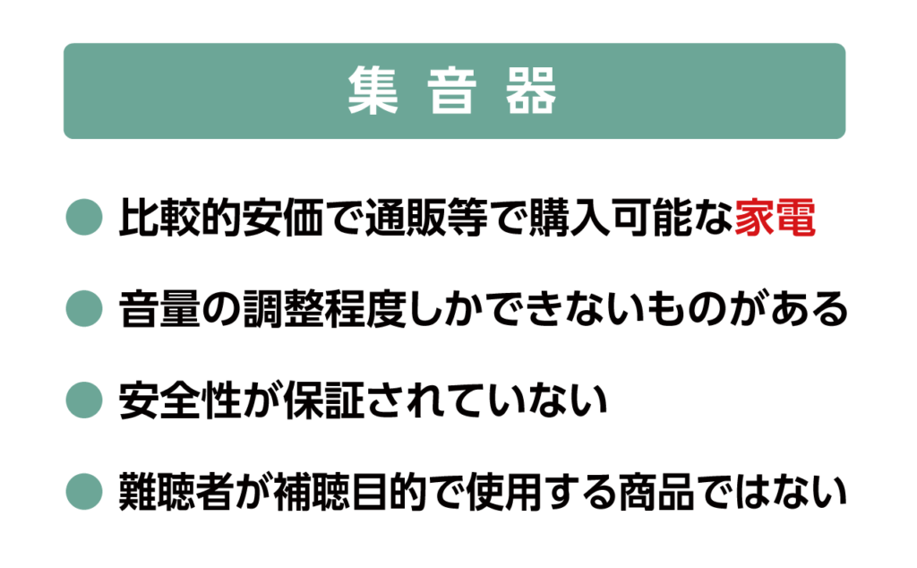 集音器は難聴者が補聴目的で使うものではありません