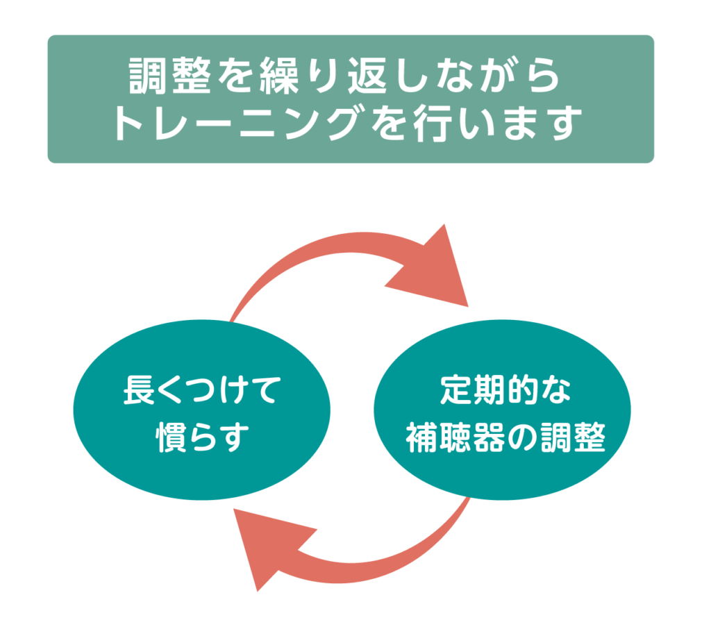 補聴器で効果を上げるには、補聴器の音に慣れるトレーニングが必要です。