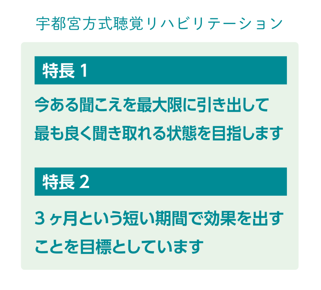 補聴器のトレーニング方法のひとつとして、宇都宮方式聴覚リハビリテーションがあります。